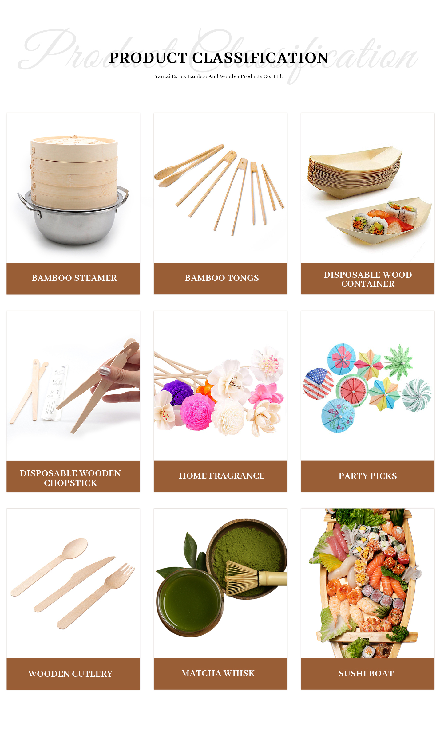 Main categories: Bamboo Whisk, Bamboo Skewer, Chopstick, Bamboo Food Tong, Various Specifications of Bamboo Wooden Tableware